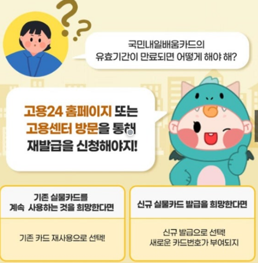 고용24에서 온라인으로 카드 신청을 하거나, 고용센터를 방문해 접수할 수 있습니다. 자영업자나 특수형태근로자는 관련 서류를 제출해야 할 수 있습니다.