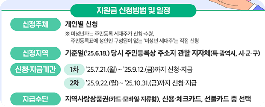 - 2차 지급은 지자체별 예산 및 행정 처리 일정에 따라 다소 차이가 날 수 있습니다.